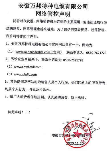 鄭重聲明:安徽萬邦特種電纜有限公司官方網站為:www_wanbangcable_com.mdfindahome.com,除此之外無任何子網站或合作網站,其余均為假冒偽劣。電話:0550-7621728 13485756353 地 址:安徽省天長市滁州高新技術產業開發區經四路29號